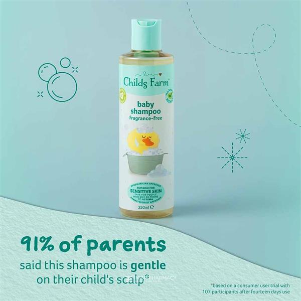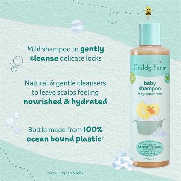 Childs Farm Baby Shampoo is a mild and gentle yet effective shampoo specially formulated for your little one's sensitive skin and hair. Even though some babies have little to no hair this shampoo is mild enough to use on their delicate scalp.