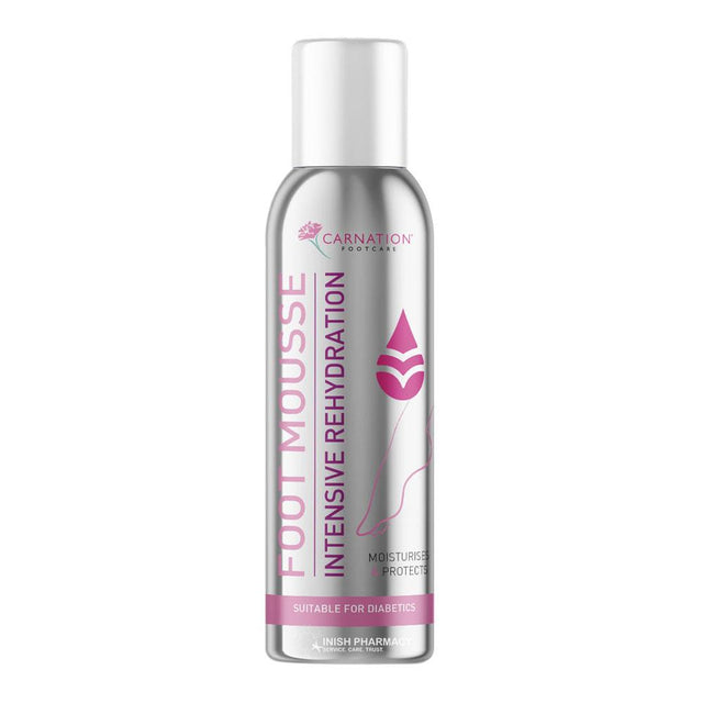 The Carnation Foot Mousse offers intensive rehydration to dry cracked feet. This mousse formula helps maintain epidermal and dermal skin layer hydration.