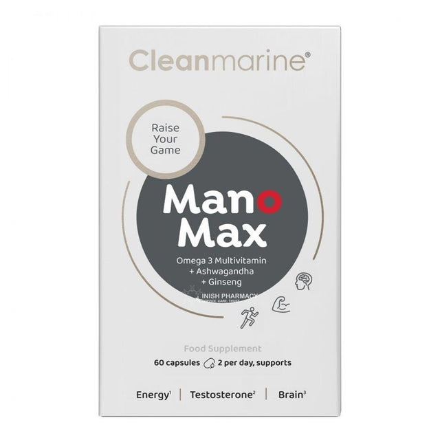 ManoMax (Formerly Cleanmarine Krill Oil for Men )is the unique all-in-one Omega-3 multivitamin, rich in essential nutrients providing daily nutritional support for men. So you can raise your game! With Phospholipid Omega-3 DHA providing the essential fatty acids required for the normal function of the brain, and added KSM-66 Ashwagandha and Ginseng for maximum support.
