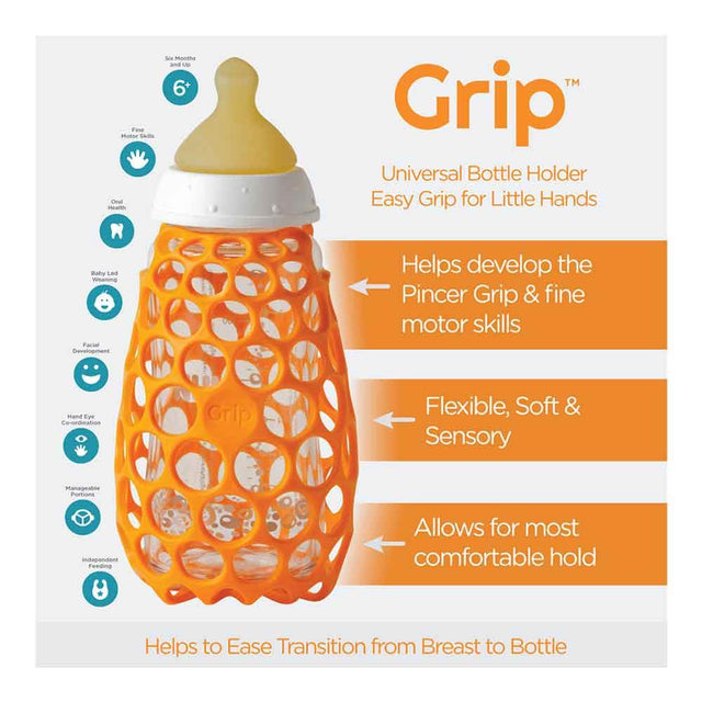 Cognikids grip is a bottle gripper that is designed to help babies grasp their own bottle encouraging self-feeding. Designed for 4 months onwards, universal compatibility, 100% recyclable TPE, food safe and dishwasher safe.
