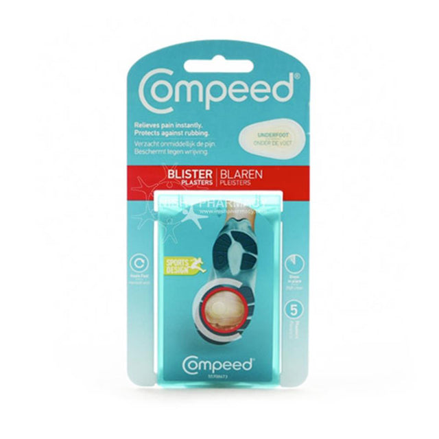 Compeed Blister Plasters Underfoot adds cushioning to underfoot blisters protecting them from further irritation. These plasters help to reduce pressure and pain on the area. They protect against water, germs and dirt and are ideal for use during sport