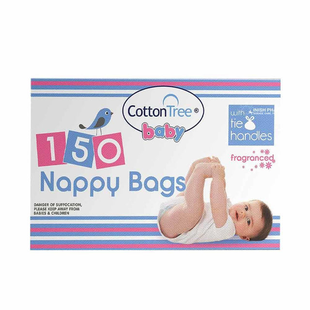 CottonTree Nappy Bags are an easy and hygienic way to dispose of soiled nappies. Each box contains 150 fragranced nappy bags with tie handles. The colour is subtly coloured to disguise the contents.