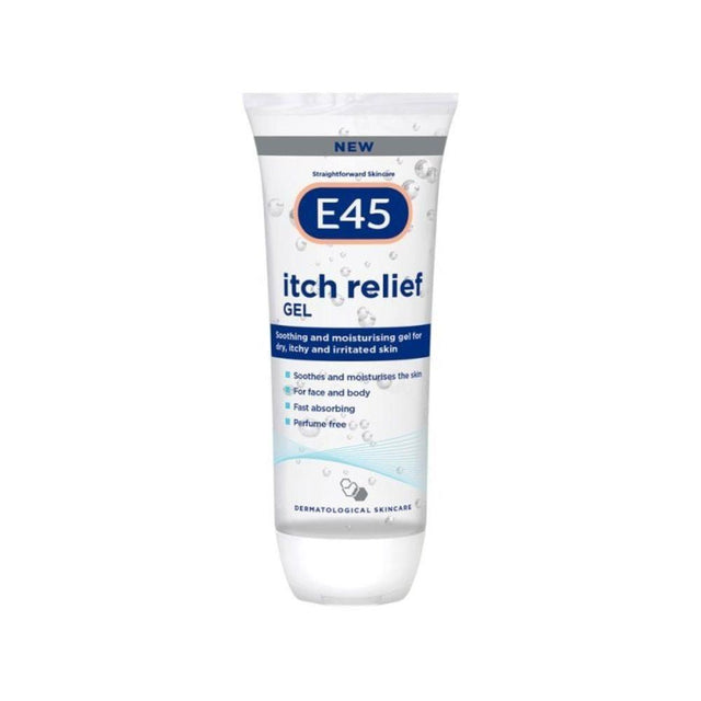 E45 Itch Relief Gel is designed to immediately soothe, cool and calm dry, itchy and irritated skin. It can be used on the body, face and hands and is safe to use by the whole family. The formula includes Glycerin to moisturise, soothe and heal skin, and Vitamin B5 to help attract and retain skin moisture. The lightweight gel texture is easily absorbed with no rubbing required when applied to sensitve areas. Can be stored in the fridge for added cooling relief.