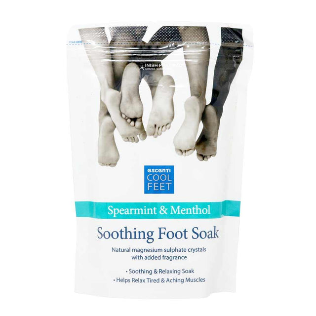 Escenti Cool Feet Soothing Foot Soak Spearmint & Menthol is a soothing and relaxing soak for your feet to help relax tired and aching muscles. It contains natural Magnesium Sulphate Crystals and has a spearmint and menthol smell.