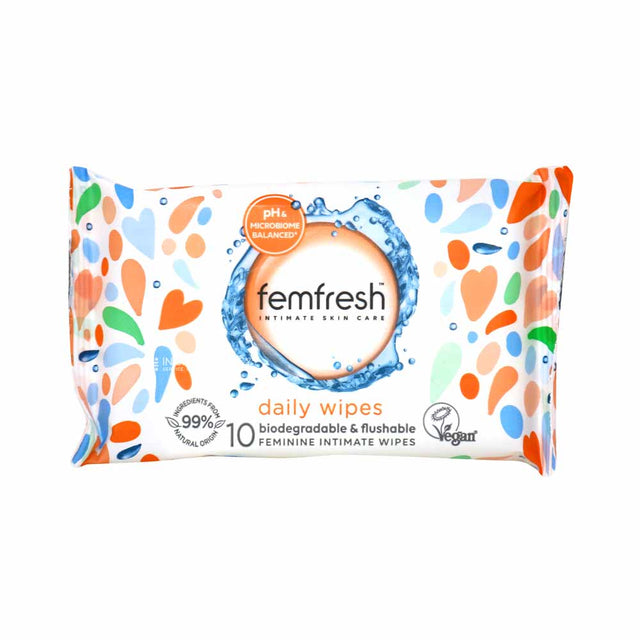 Femfresh Biodegradable & Flushable Wipes 10 Pack