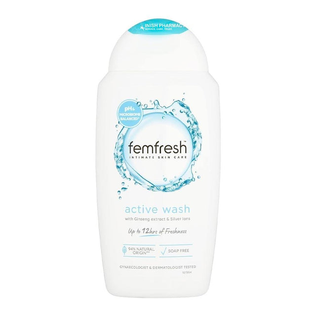 Stay fresh and confident all day with Femfresh Ultimate Care Active Fresh Wash. Specially formulated for intimate hygiene, this gentle wash provides long-lasting freshness, helping you feel comfortable and odour-free. Enriched with a unique Multi-Actif complex and aloe vera, it effectively cleanses and cares for delicate skin without disrupting your natural balance.