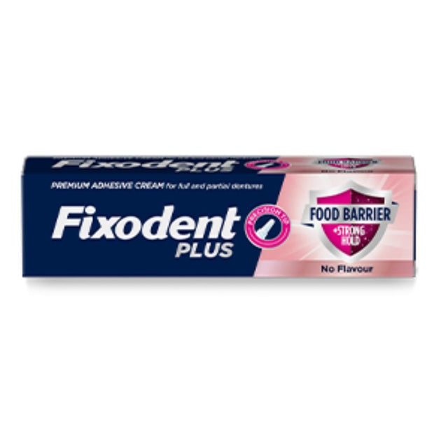 Fixodent Plus Food Barrier, Strong Hold 40g can be used every day to help prevent small food particles from getting under your denture. Its Precision tip nozzle enables a precise application and creates a comfortable barrier against food infiltration.
