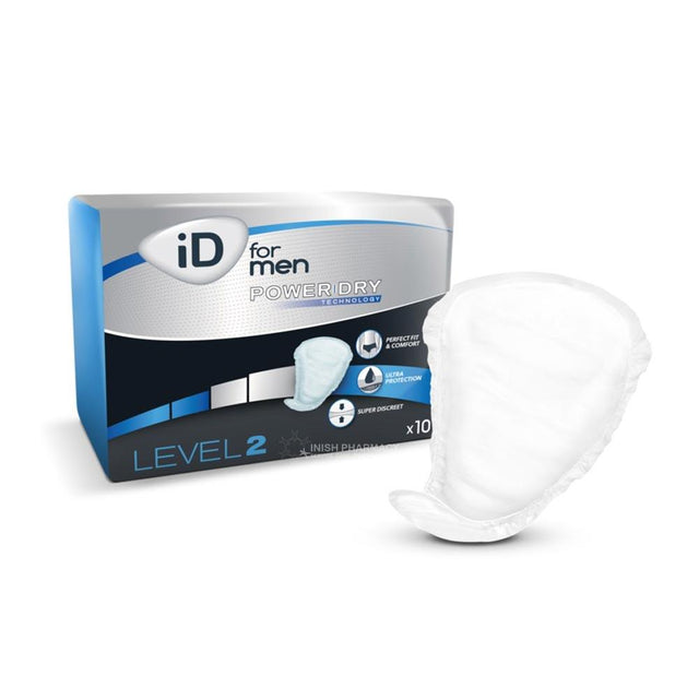 iD Men Pads Level 2 is a pad specifically designed to fit the male anatomy. The Power Dry Technology gives a maximum absorption to help you feel confident and dry all the time. These pads are ideal for men suffering bladder weakness and little discomforts.