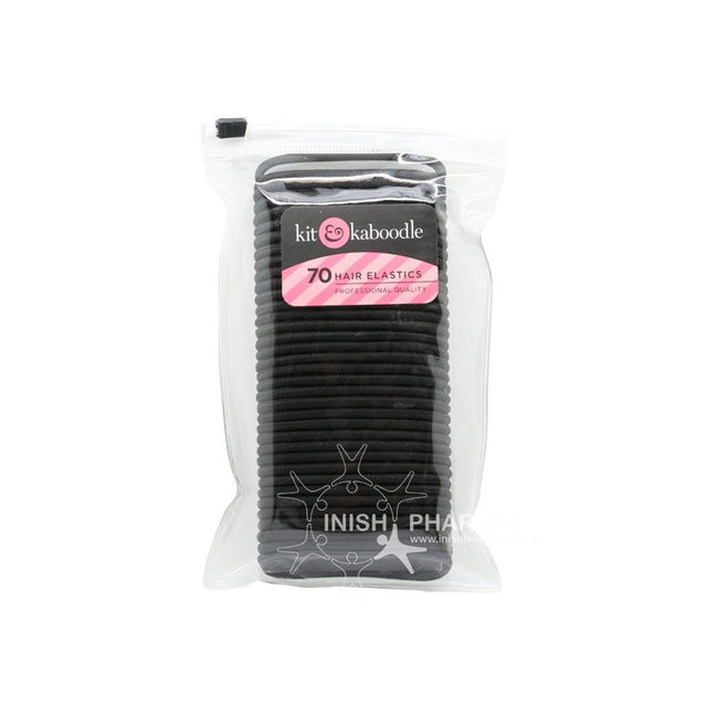 The Kit & Kaboodle 70pk hair elastic bands are an essential item for hair that can be tied. These strong elastic bands come in the colour black.