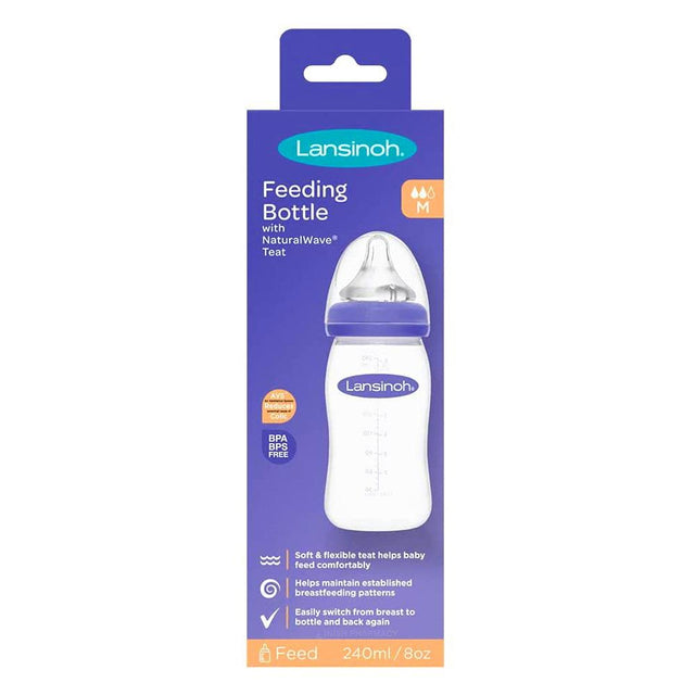 Lansinoh Feeding Bottle with Natural Wave Teat Medium Flow 240ml