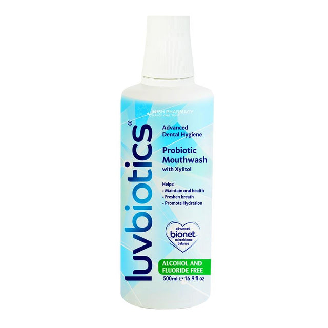 Luvbiotics is the first dental care brand to introduce probiotics into its formulations. Backed by clinical research, dental probiotics help balance the oral microbiome by encouraging the growth of beneficial bacteria and limiting the presence of harmful ones that contribute to common dental problems. The Luvbiotics Fluoride Free Mouthwash features a powerful blend of carefully selected ingredients, including xylitol as the primary sweetener. This natural ingredient is known to help prevent cavities and reduce the risk of tooth decay. Infused with a blend of natural oils, this mouthwash delivers a refreshing, minty taste while offering a gentler and more enjoyable experience compared to harsh chemical-based rinses.