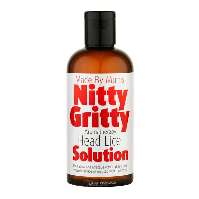 Nitty Gritty Aromatherapy Head Lice Solution is infused with tea tree, neem and essentials oils. It is a nut-free based formula with added wheatgerm that will leave your hair in healthy condition. The headlice solution uses safe and proven natural ingredients.