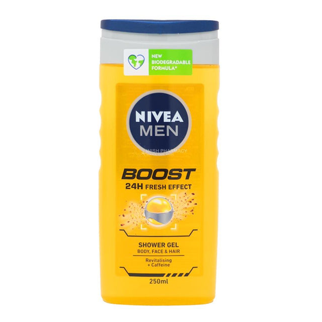 The Nivea Men Boost Shower Gel offers 24hours freshness. Grab the first shower gel with naturally-sourced caffeine. It’s the perfect kick-start to the day.