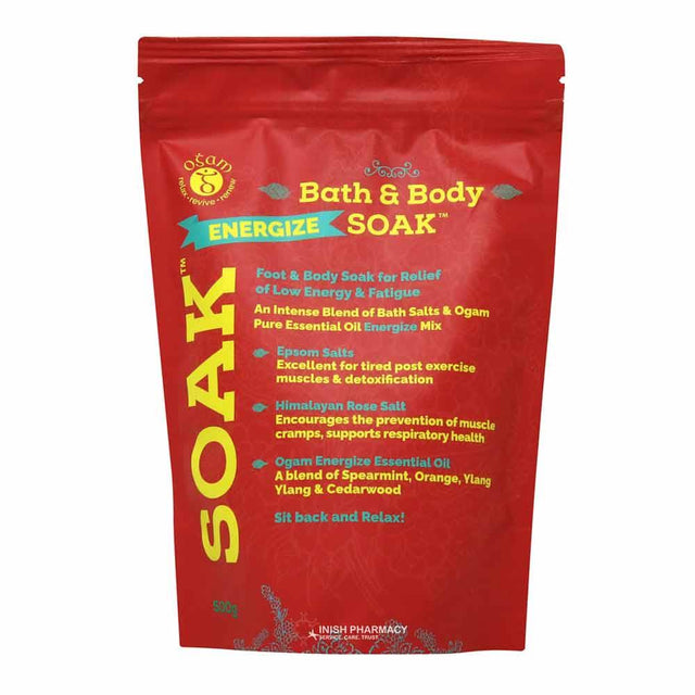 From Ogam Oil’s, Ireland's best loved Aromatherapy brand comes their amazing Energize Bath and Body Soak, a special blend of high quality natural ingredients made specifically to energise your body giving you relief from low energy and fatigue whilst promoting skin rejuvenation. This bath soak is jam packed with Spearmint, ORange, Ylang Ylang and Cedarwood to boost your energy by helping post exercise muscle fatigue, encouraging prevention of muscle aches and cramps.