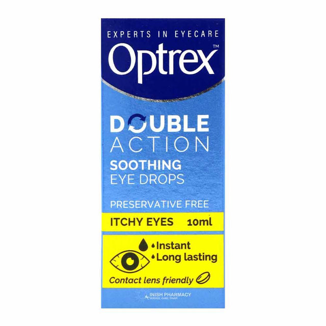 Optrex double-action drops for itchy and watery eyes are preservative-free and easy to use. They can be used with contact lenses and are great at combatting itchiness and watery eyes. They are suitable for daily use and provide long-lasting results.