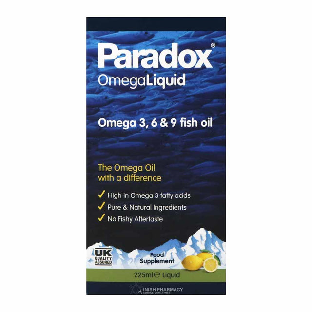 Paradox Omega Liquid with Omega 3, 6 and 9 food supplement with a hint of lemon oil made with pure fish oil with extra virgin olive oil. Made from 100% pure natural ingredients it delivers the benefits of both Arctic and Mediterranean diets, with no fishy after taste.