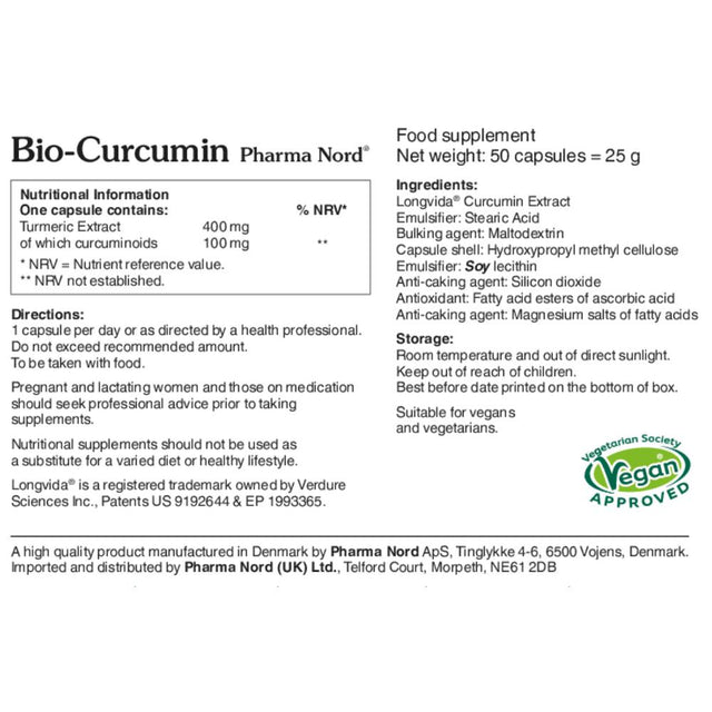 The Pharma Nord Bio-Curcumin Capsules contain 400mg of curcumin extract in each capsule. Curcumin is known to help with anti-inflammatory benefits such as the reduction in joint pain, and an increase in mobility & flexibility.
