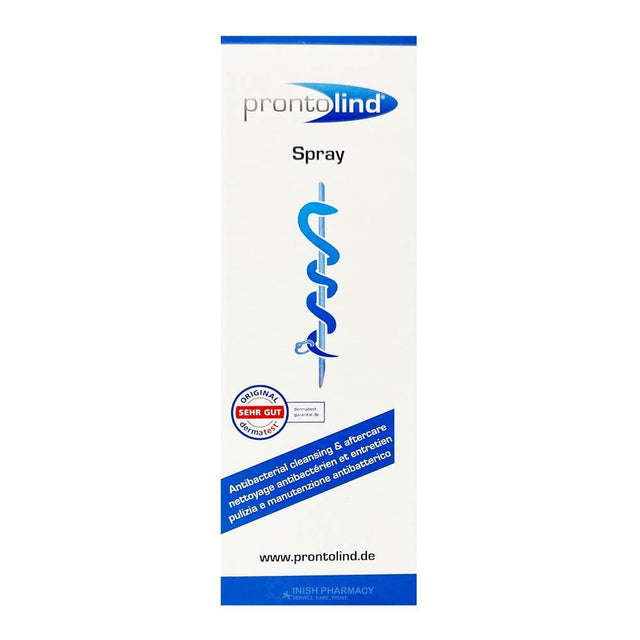 Prontolind Spray for piercings cleans and cares for sensitive and hard-to-reach areas without irritation. The spray penetrates the piercing puncture canal on its own. After a short time, encrustations can be removed painlessly with lint-free compresses or cotton swabs. Prontolind Spray can also be used for daily cleaning and care of jewellery and the puncture canal.