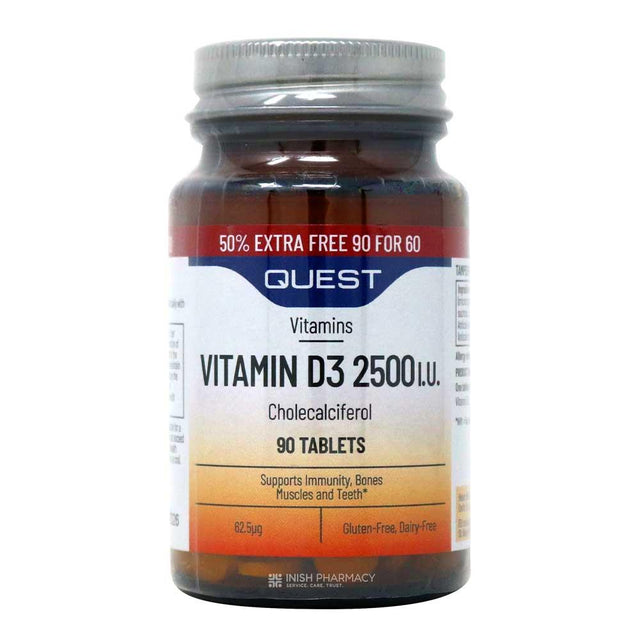 Vitamin D supplement to support bone and immune health. Provides 2500iu of vitamin D per tablet.