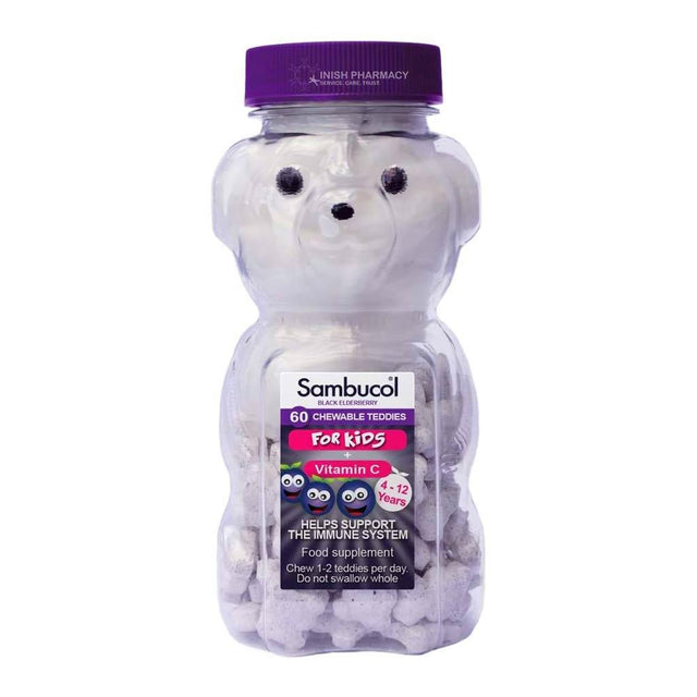 Sambucol Chewable Teddies for Kids have been developed by scientists to give your child all year round immunity support. Each chewable teddy contains Elderberry and Vitamin C which work together to strengthen your child’s immune system.