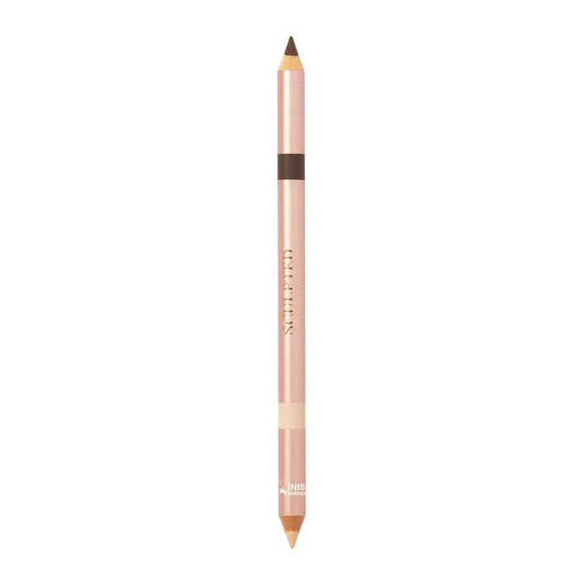 The Sculpted By Aimee Brighten & Define Eyeliner Duo Brown/Nude is a double-ended eye pencil that has a brightening nude and a brown liner at the other end.