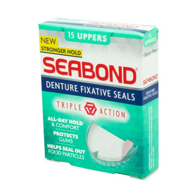 Seabond Denture Fixative Seals guarantee to hold the gum tight all day. The triple action seals have been designed to seal out any food particles and also promise comfort.