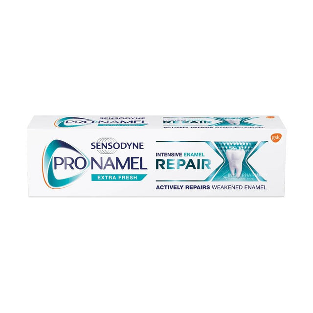 Sensodyne Pronamel Intensive Enamel Repair actively repairs weakened enamel caused by dietary acids. Using this toothpaste will also help restore the natural whiteness of teeth. Sensodyne Pronamel Intensive Enamel Repair Whitening is proven to drive minerals deep into the enamel surface to actively repair weakened areas of the enamel caused by dietary acids, for stronger, better protected teeth.