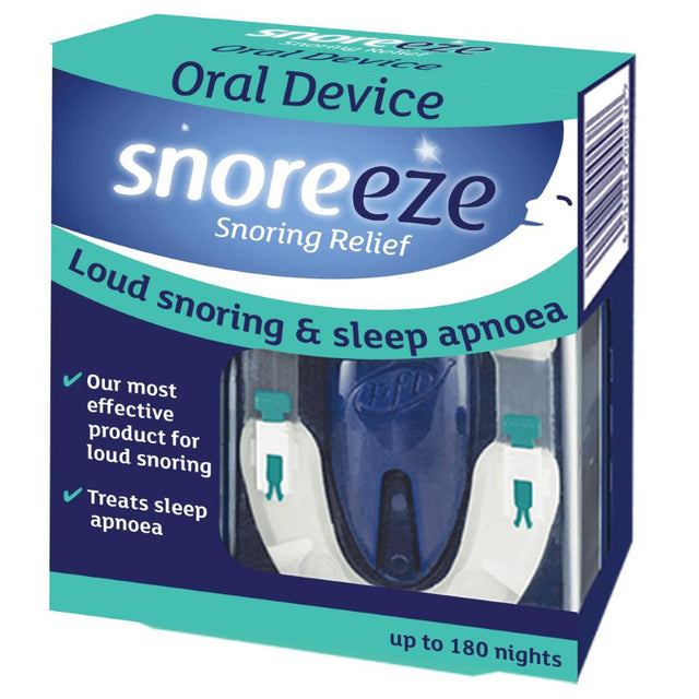 Snoreeze Oral Device is quickly and simply moulded to fit your teeth. The fully adjustable mouthpiece gently holds your jaw forward as you sleep. This opens your airway, helping you to breathe quietly and easily, treating the symptoms of snoring and sleep apnoea.
