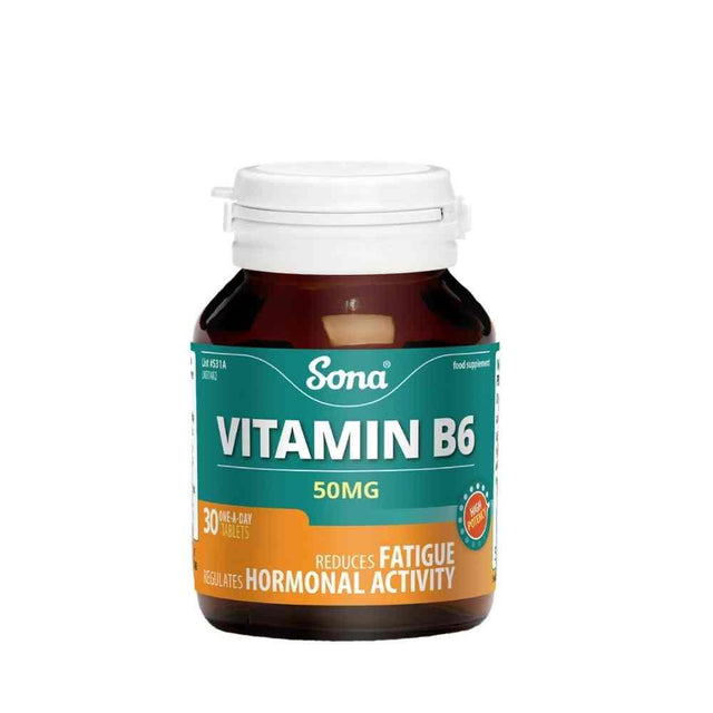 Sona Vitamin B6 50mg One A Day supplement helps support your energy metabolism, nervous system, regulation of your hormonal activity and your immune system. This one a day supplement also helps to reduce tiredness and fatigue.