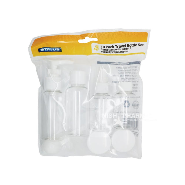 Status 10 Pack Travel Bottle Set has everything you need for your travel size products. From transfering your products to the leak prrof design, this set is a must if you are travelling. This set includes: