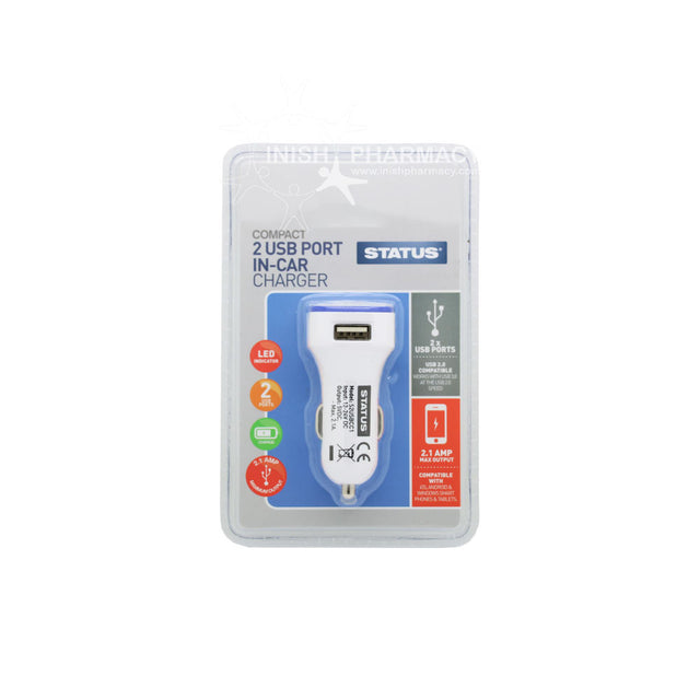The Status 2 Port USB Car Charger fits a standard car cigarette socket. This USB port can charge to items at the same time, for e.g. mobile phone and dash cam.