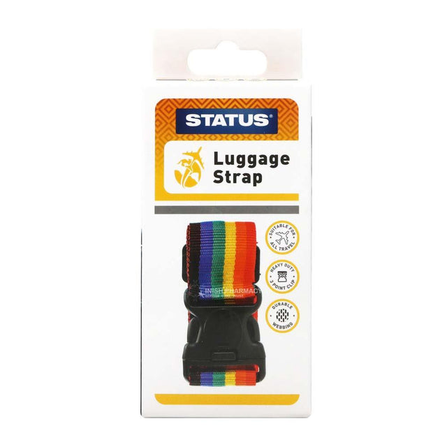 The Status Luggage Strap in vibrant multi-colour keeps your luggage secure and stylish with these durable, adjustable straps. They are perfect for adding an extra layer of protection and easy identification to your belongings while traveling.