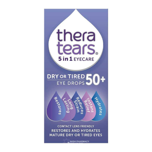Thera Tears Dry or Tired Eye Drops have been formulated for mature eyes. These drops offer soothing relief from dryness and fatigue, replenishing moisture for lasting comfort. With advanced technology and a gentle, preservative-free formula, TheraTears provides instant refreshment, revitalising your eyes' natural balance.