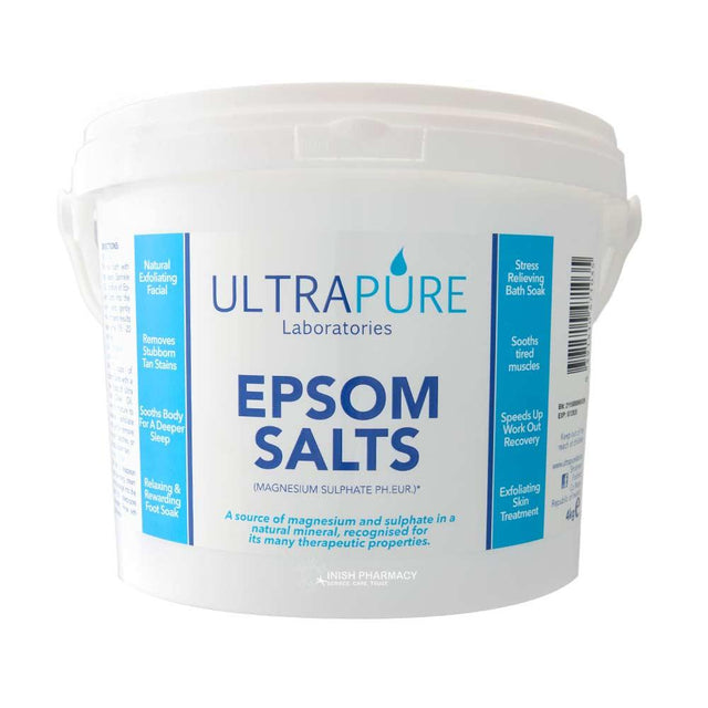 Guaranteed Irish and Vegan-Friendly ULTRAPURE Laboratories® Epsom Salts (fragrance-free and Ph.eur Grade) are a must for sore, aching muscles and joints.