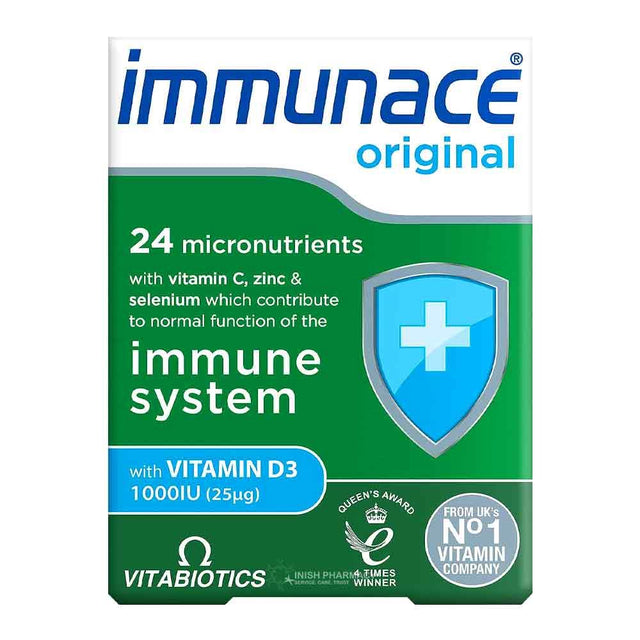 The Vitabiotics Immunace Orgianl Supplement is an advanced micronutrient formula with Vitamin C, Zinc, & Selenium that help with the normal function of your immune system.