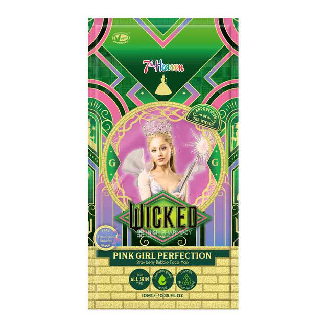 Refresh and revitalise your skin with the Wicked 7th Heaven Glinda Strawberry Bubble Face Mask. This fun, oxygen-infused mask gently bubbles on contact to deeply cleanse pores and remove impurities. Enriched with juicy strawberry extract and antioxidants, it helps to brighten, smooth and leave skin feeling soft, clean and glowing. Perfect for a pampering treat that delivers visible radiance and a touch of fun!